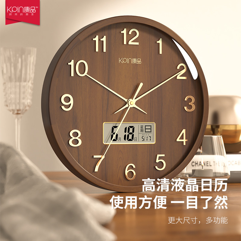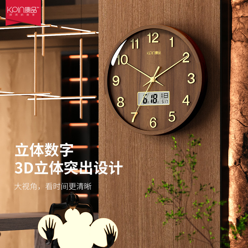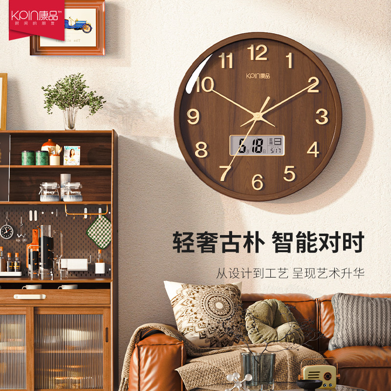 Watch Home New Chinese hanging bell Living room Home Intelligent Automatic pair of time hanging wall solid wood Perpetual Calendar Airwaves Clock-Taobao