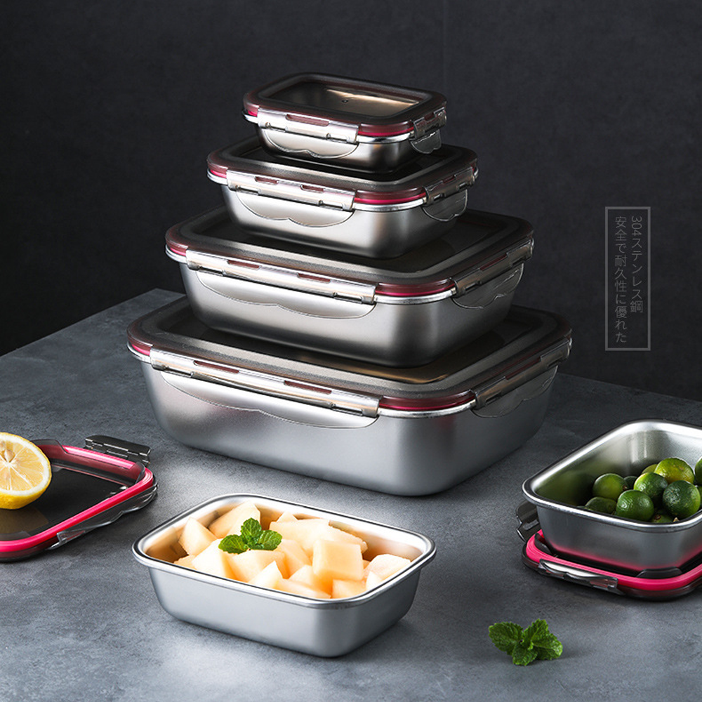 304 stainless steel food containing box sealed food grade kitchen fridge refreshing box sealed tank food cartridge cover-Taobao