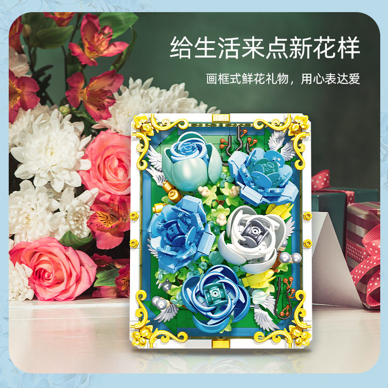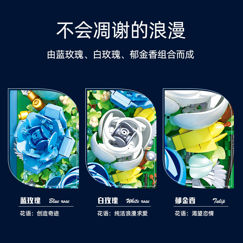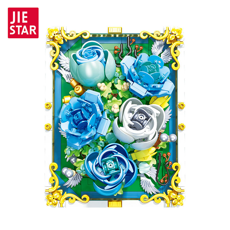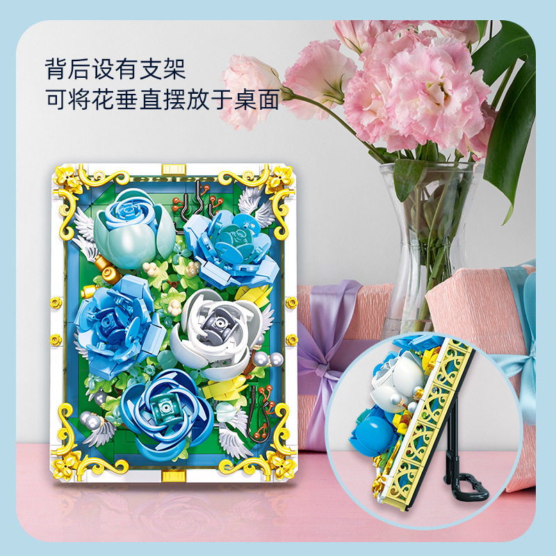 JeStar JJ9029 Mini emulation DIY building block bouquet blue and white rose three-dimensional puzzle toy furniture swing piece-Taobao