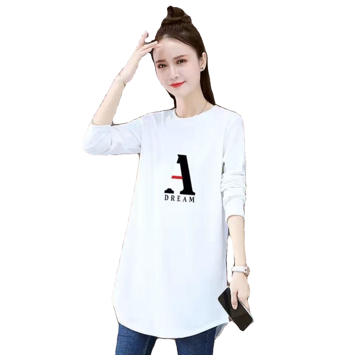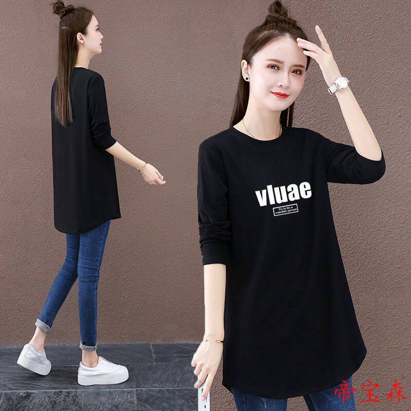 Pure cotton regular with long sleeves T-shirt woman 2023 spring autumn new beat undershirt female covered with ass-cut blouses-Taobao