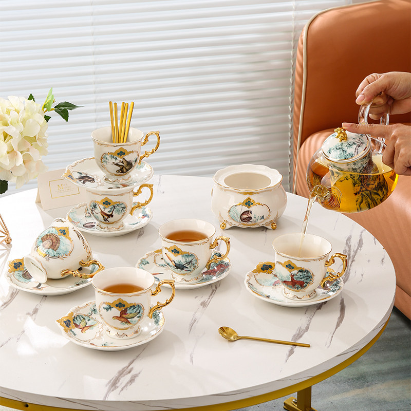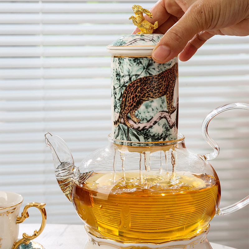 Beauty Aisle Fantasy Jungle Glass Bubble Teapot Candle Heating Cooking tea Lower afternoon tea tea set Suit Bone Porcelain Flower Tea Cup-Taobao