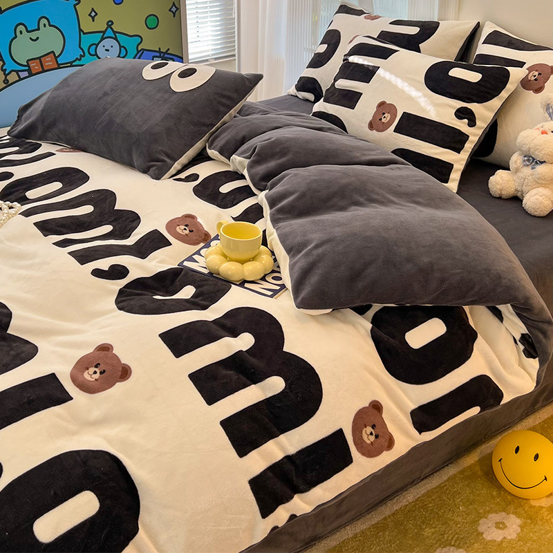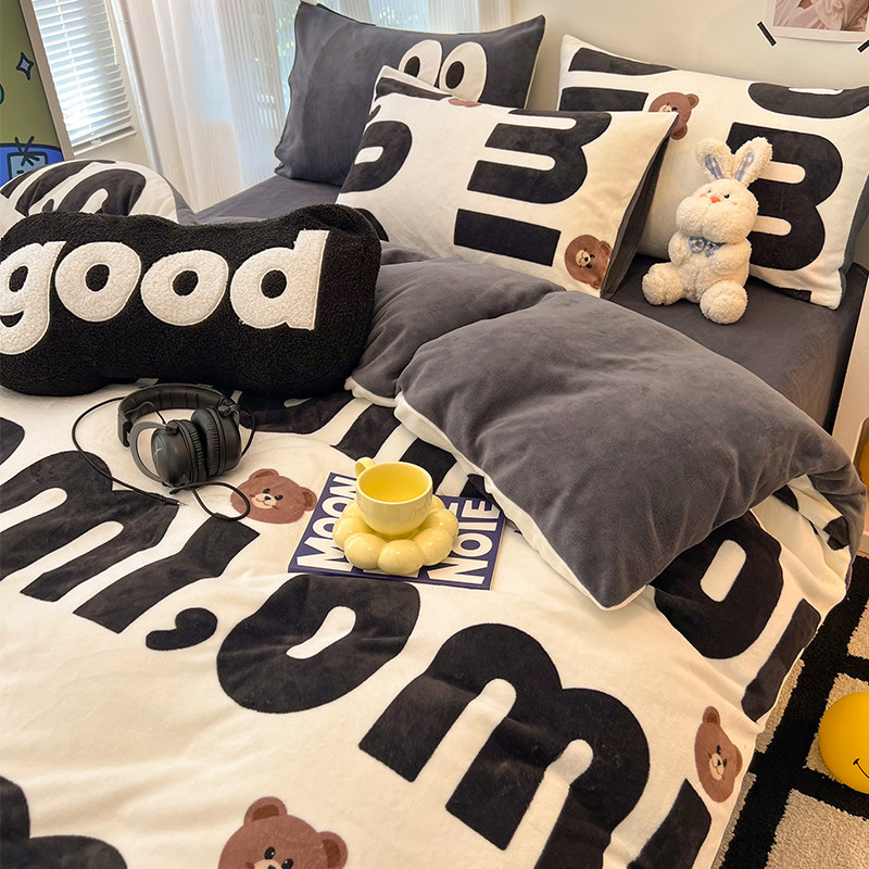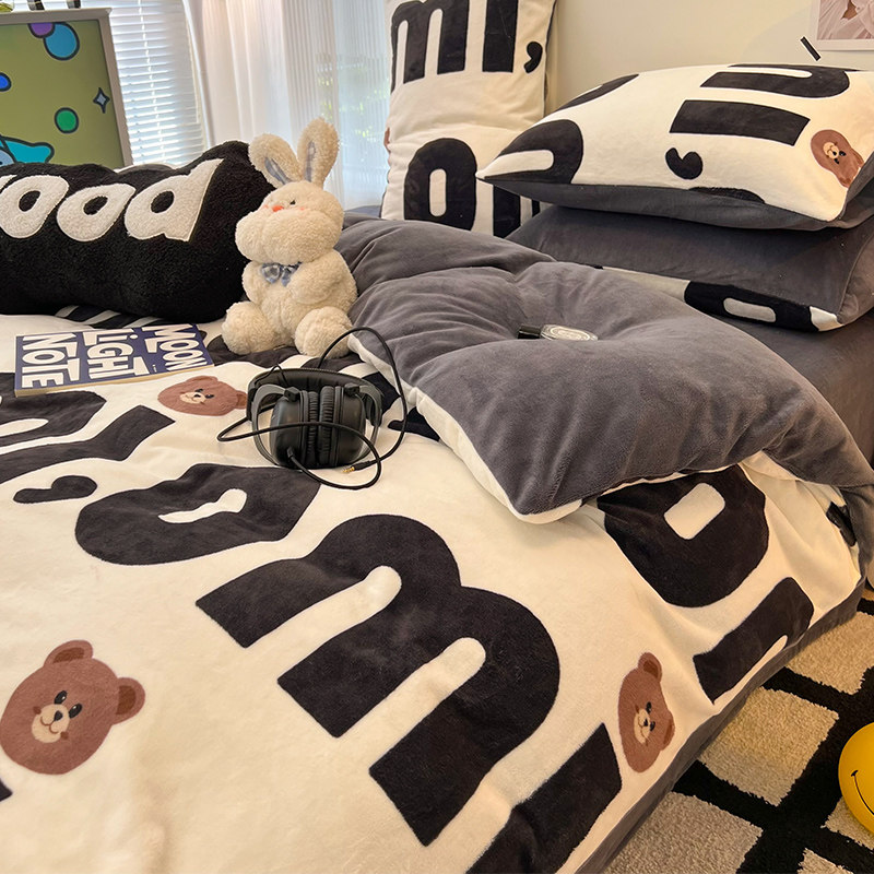 Winter bifacial milk suede quilt cover single piece 150x200x230 Warm Coral Flannel 1 5 m gushed by hood-Taobao