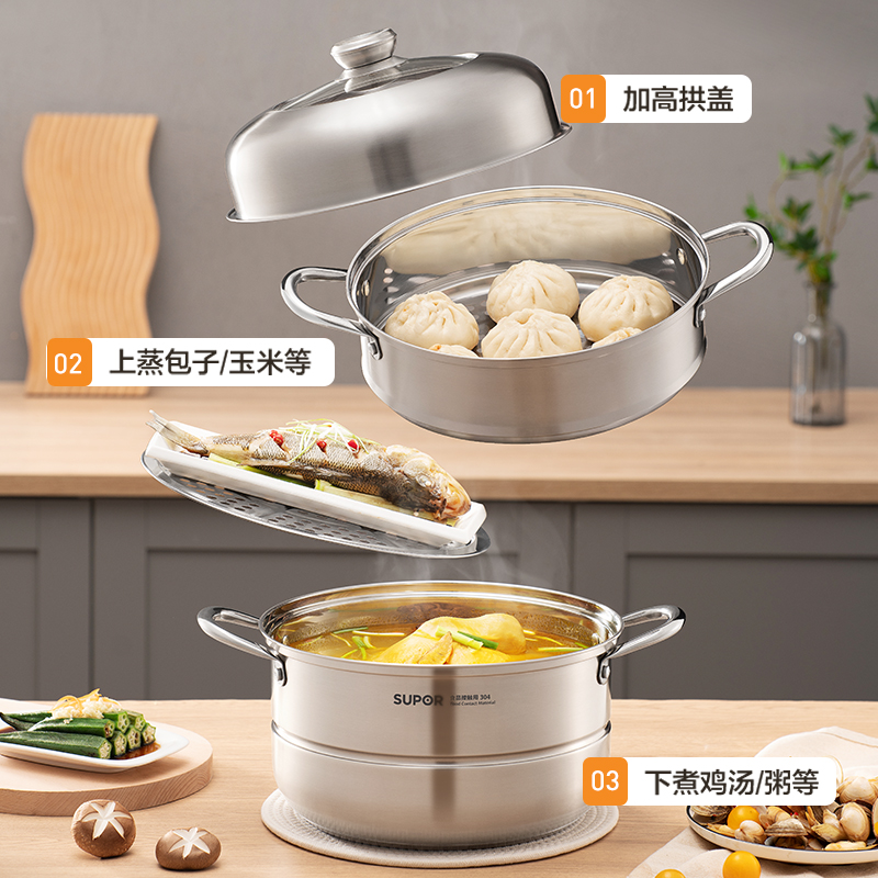 Supoir steamer Home 304 Stainless Steel Thickened Multilayer Steam Cage Drawer Triple Steamed Fish Steamed Buns Gas Induction Cookers-Taobao