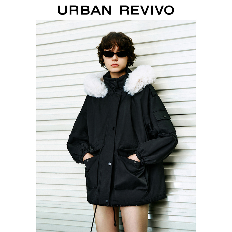 UR2023 Autumn Winter New Women's Fashion Outdoor Casual Warm Detachable Fur Collar COTTON CLOTHING UWV130099 -Taobao