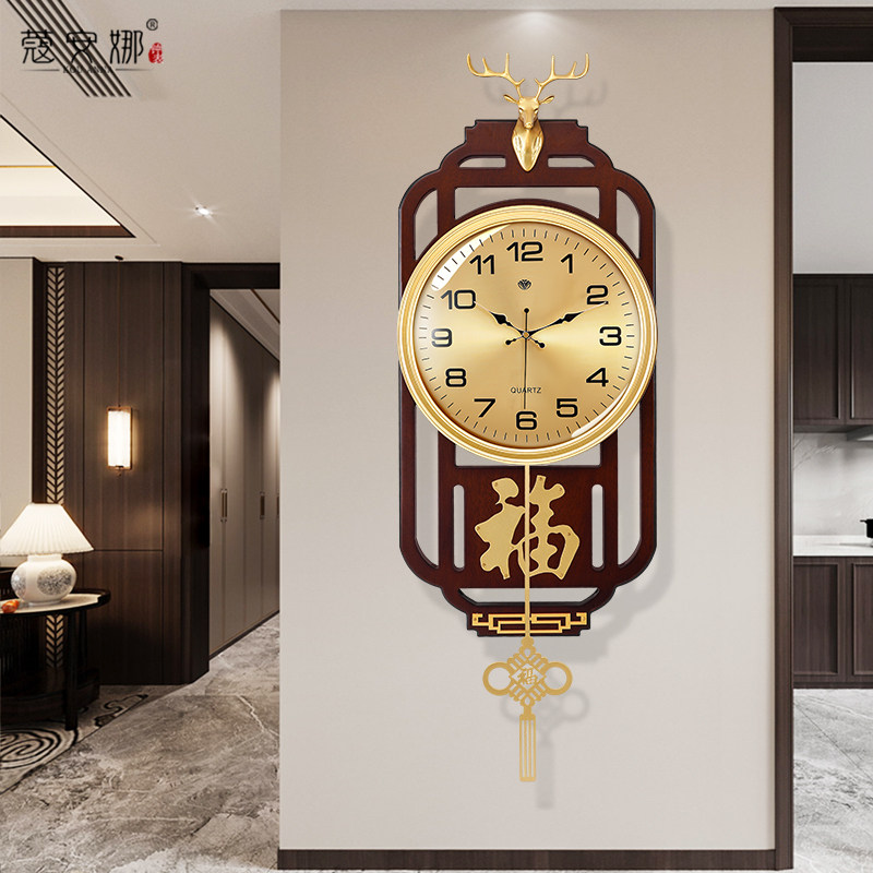 New Chinese style hanging bell Living room hanging wall China Wind decoration clock Home mute rocking Wanted quartz clock Table-Taobao