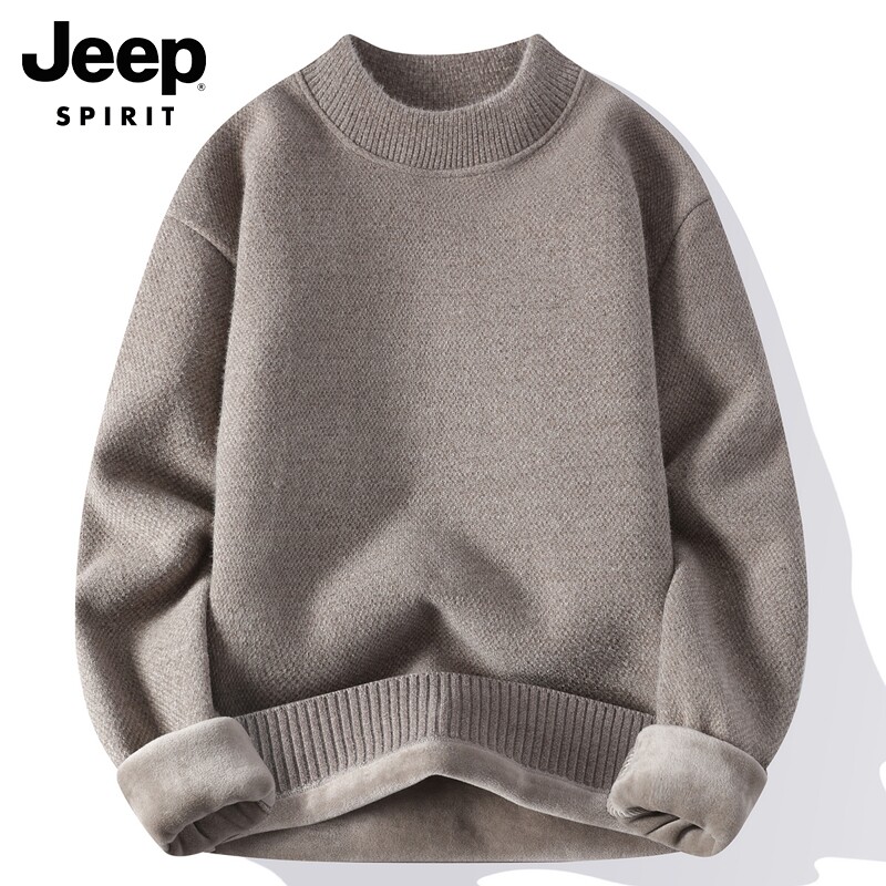 Jeep Gip Sweater Men's Winter New Loose Casual Half-High Neckline Clothing Integrated Suede Warm Knit Jersey Man-Taobao