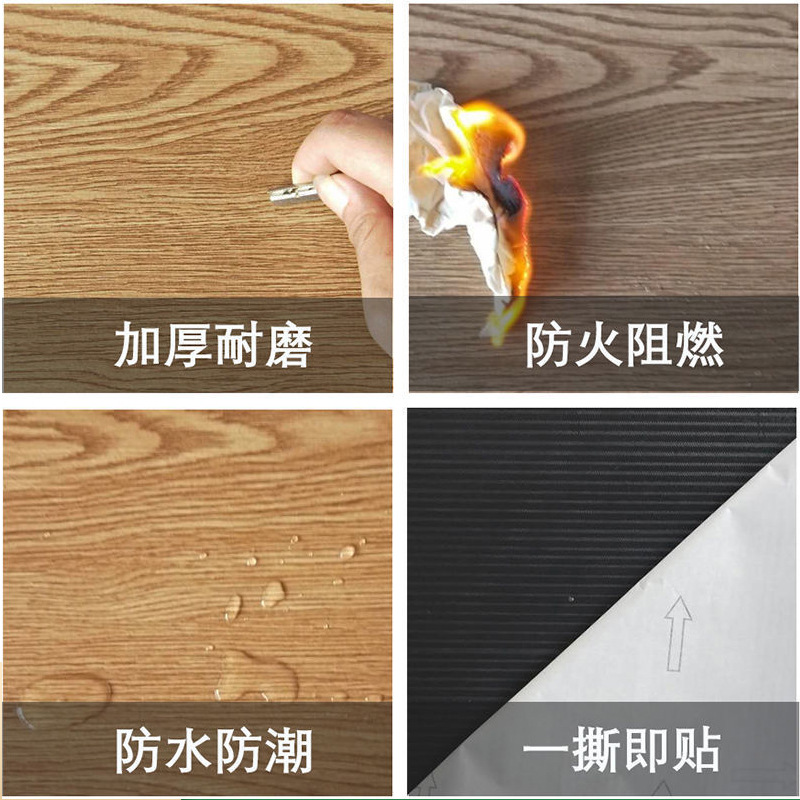 Wood grain PVC floor sticker self-adhesive ground renovated bedroom Cement stone plastic thickened waterproof abrasion resistant installation Easy-Taobao