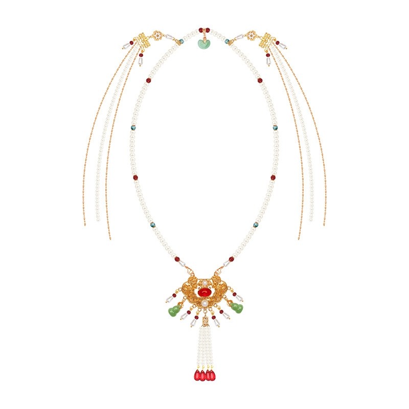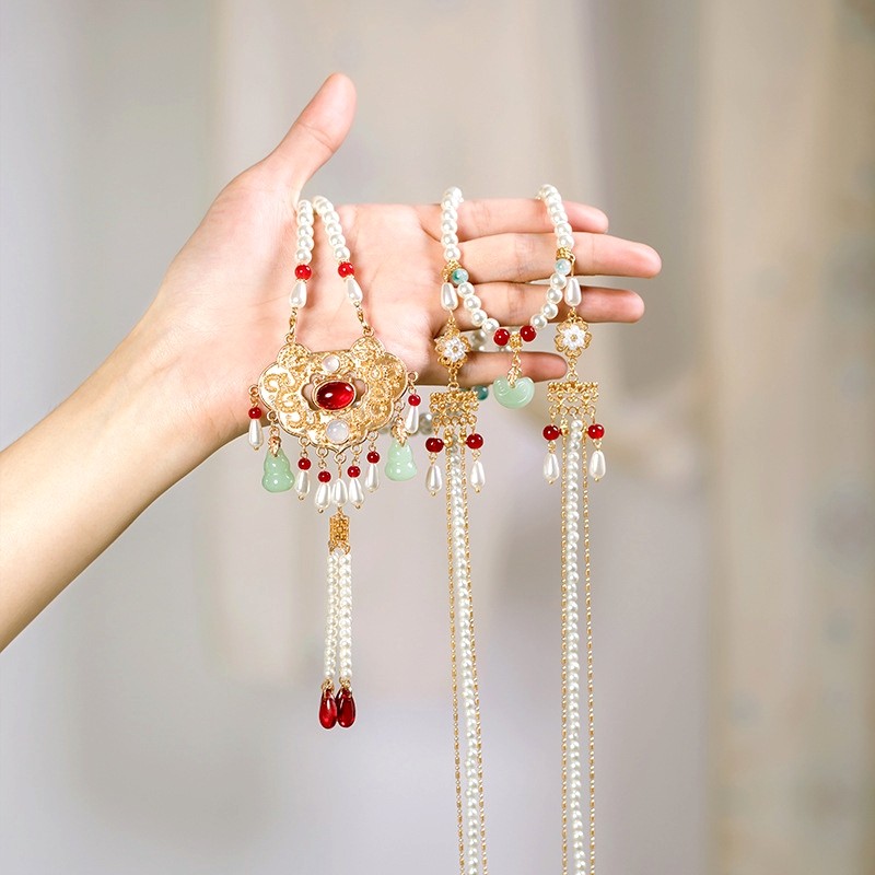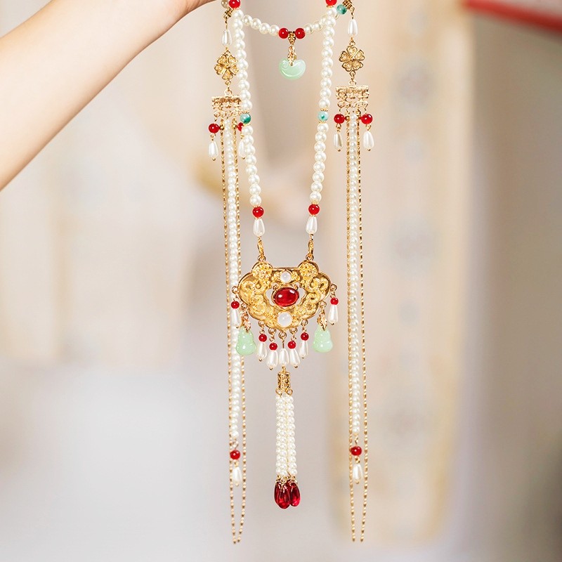 Children's ancient wind ornaments Ming-made back cloud flow Su hyacinth red long necklace ancient dress Han suit matt dress accessories Celluloid-Taobao