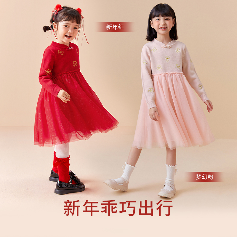 Bala Bala Girl Dress Dress Children Skirt Knit Mesh Yarn 2024 New Princess Dress New Year Dress Red-Taobao