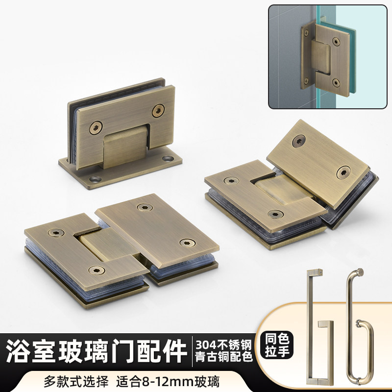 304 stainless steel green ancient bronze bathroom clip shower room hinge No frame tempered glass small door clip glass door hinge-Taobao