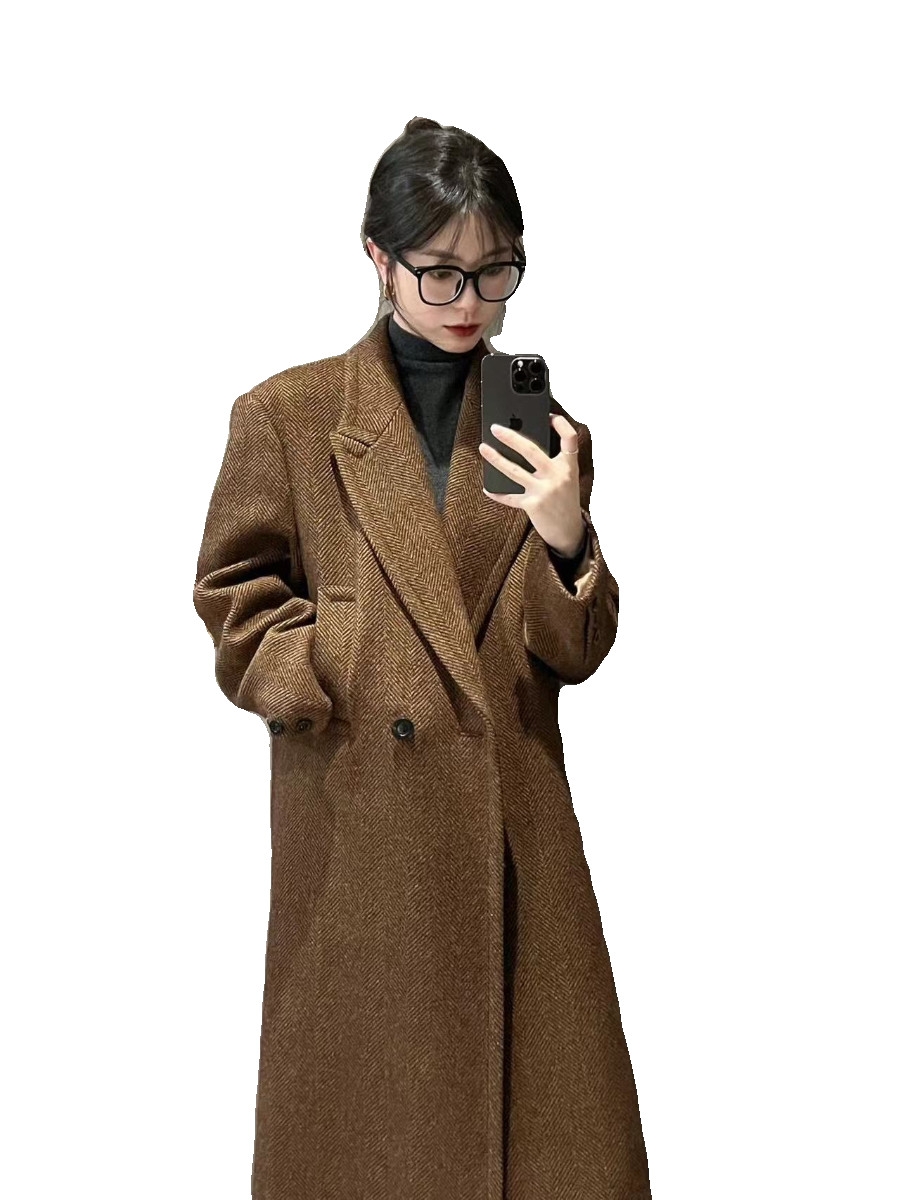 Curly herringbone textured wool top dressing woman in Korean style Loose Clip Cotton Thickened 2023 Autumn Winter New Coat-Taobao
