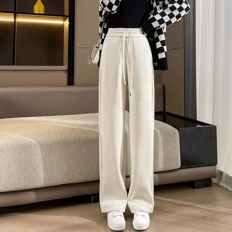 Chenille Narrow Version Broadlegged Pants Woman Spring Autumn Winter Plus Suede Pants 2023 New Light Core Suede Loose Casual Straight Drum Pants-Taobao