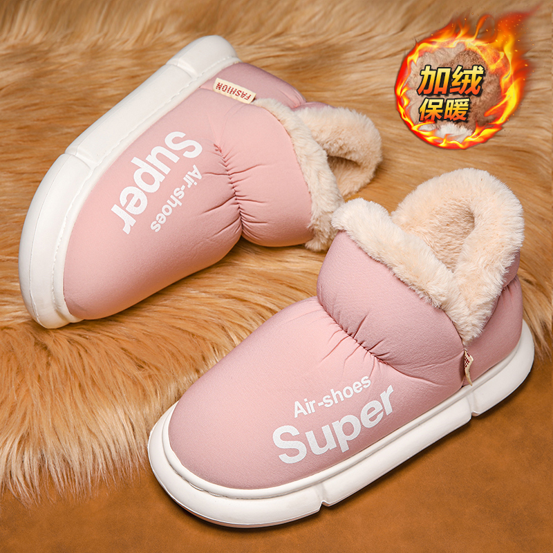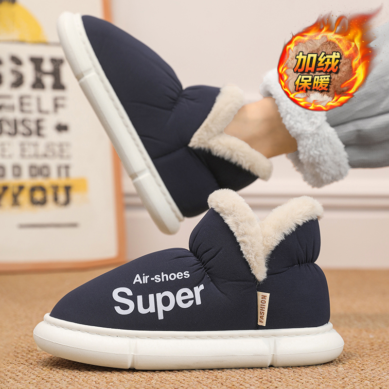 Down cotton slippers men's bag heel winter gush thickened anti-slip thick bottom home waterproof and warm cotton shoes man-Taobao