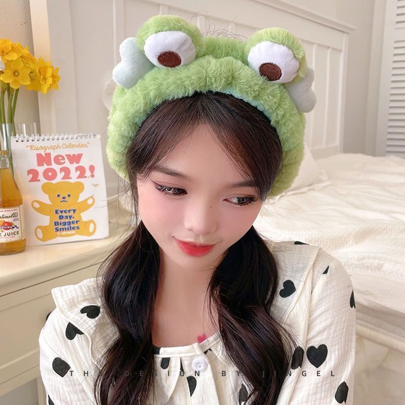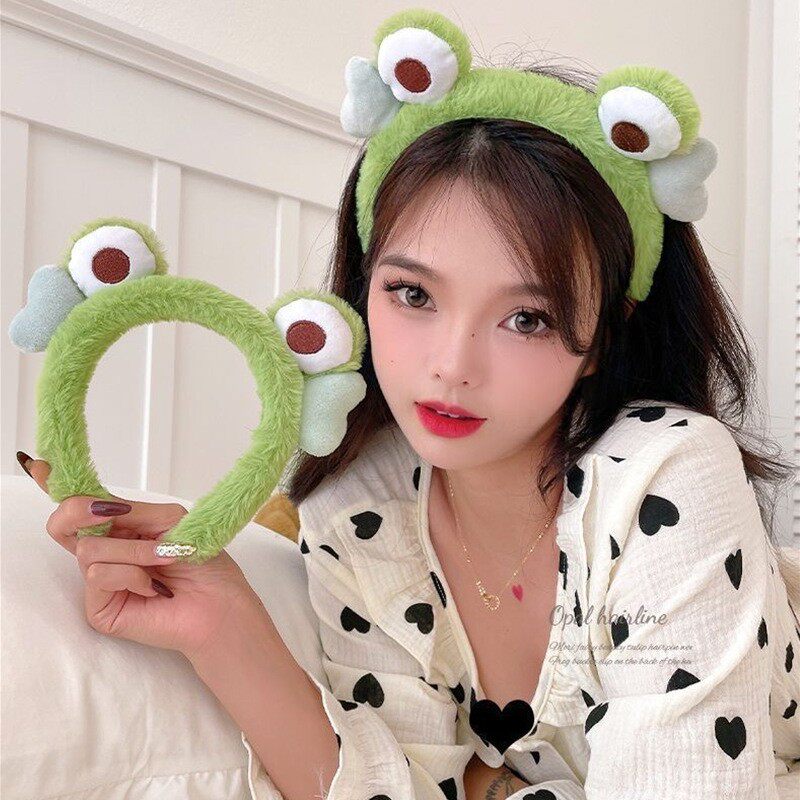 Net Red Green Frog Hair Stirrup New Cute Big Eyes Head Stirrup Hair Band Hair Wash Hair with face mask headwear with face mask-Taobao
