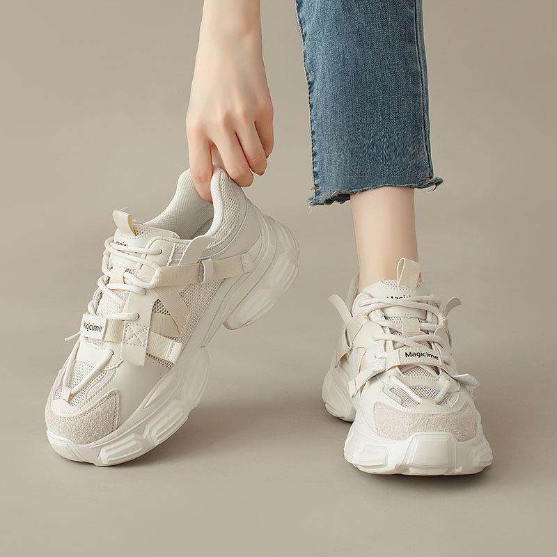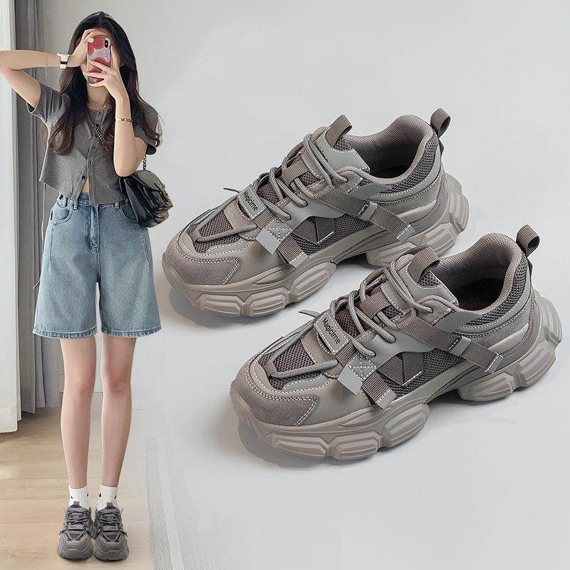 100 hitchhiking daddy shoes women 2023 spring autumn new Inn wind thick bottom soft-bottom light breathable genuine leather casual sneakers-Taobao