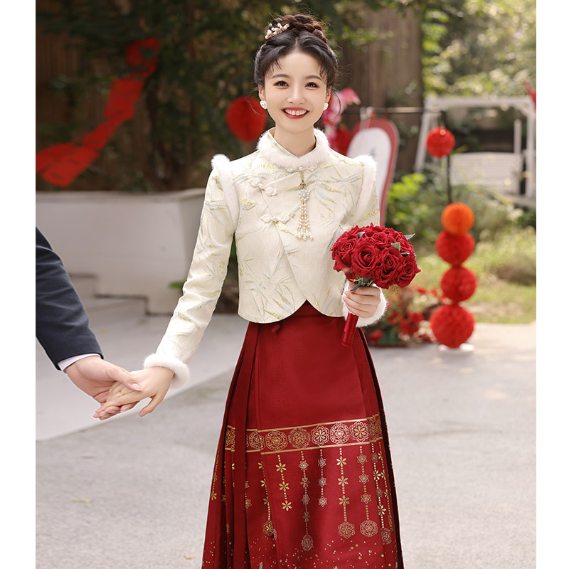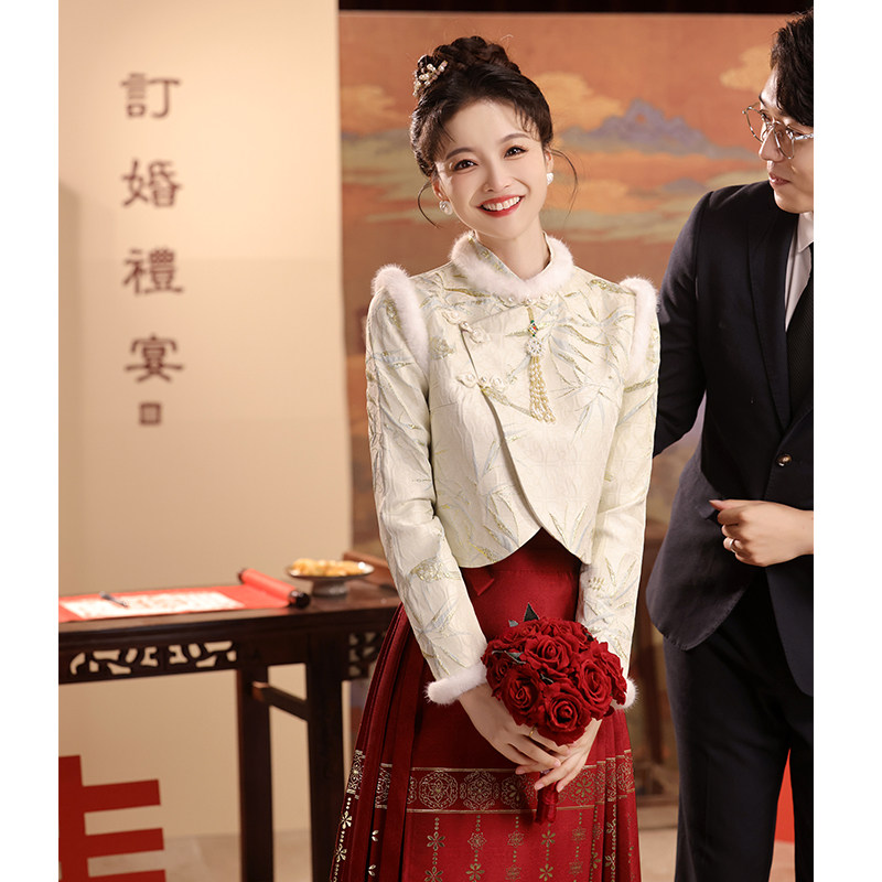 Horse Noodle Dress Toast Bride 2023 New New Chinese Wedding Dress Engagement Gown Suit Wedding Flag Gown Autumn Winter-Taobao