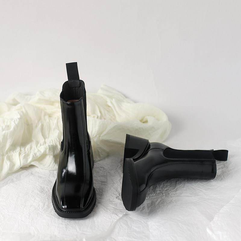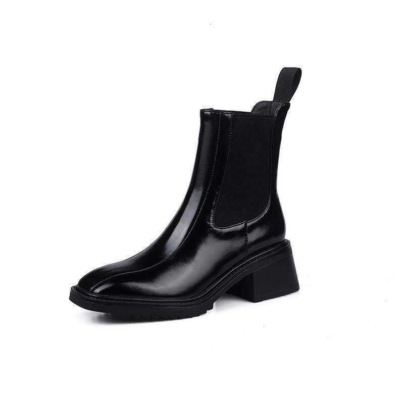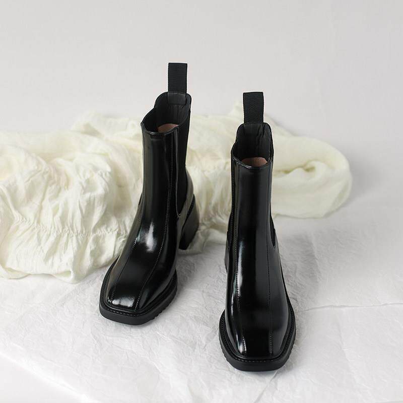 Martin boots woman 2023 autumn winter new square head fashion plus suede short boots heel genuine leather skinny boots-Taobao