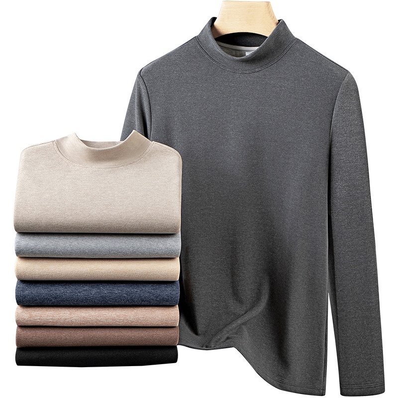 Wool mulberry silk semi-high neckline undershirt male autumn winter double face suede long sleeve T-shirt thickened warm inner hitch collar-Taobao