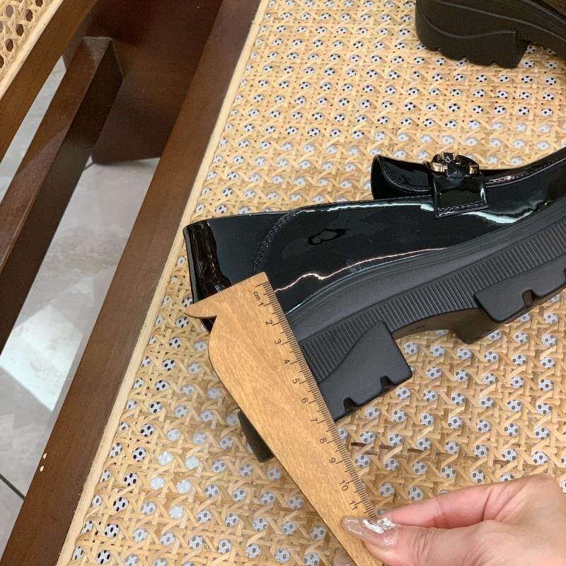 Inside heightening small leather shoes women 2023 fall new single shoe lacquered leather black genuine leather pine pastry thick bottom Inn-Taobao