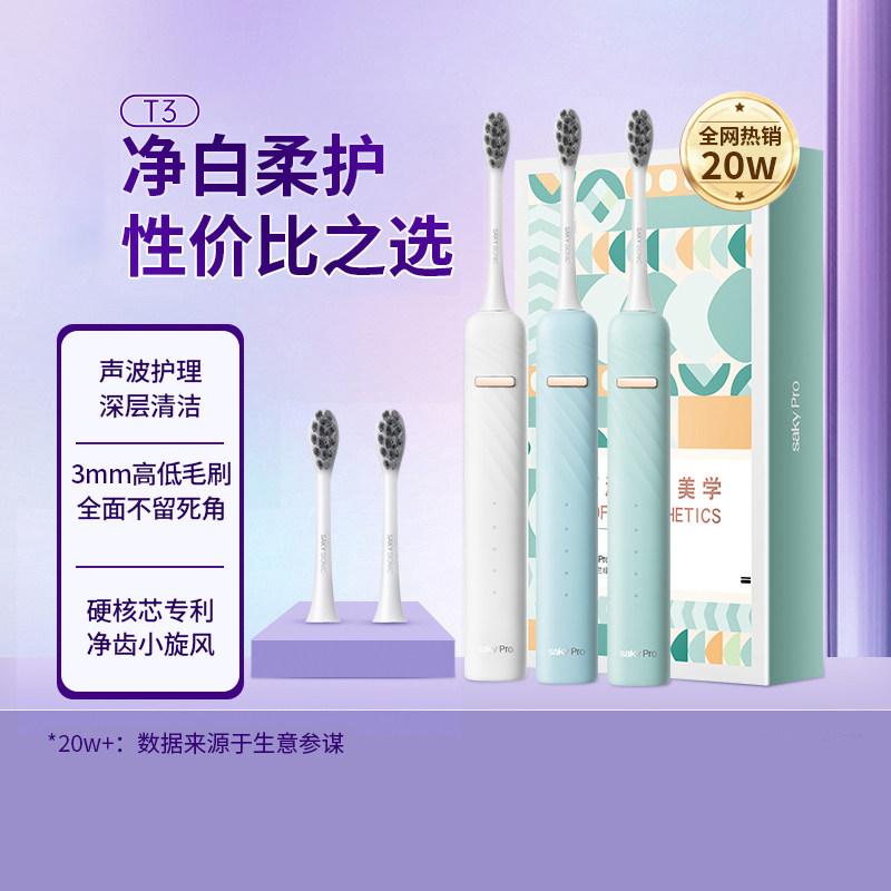 Schuguest T3 Electric Toothbrush Soft Hair Toothbrush Electric Student Couple Charging Automatic Official Flagship of Shuk-Taobao