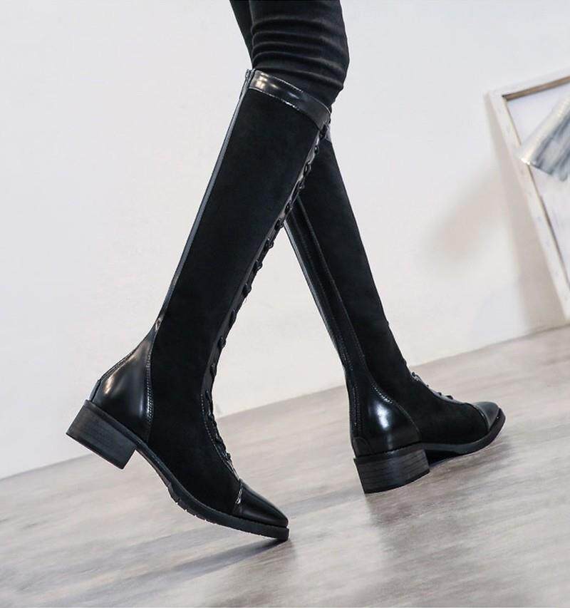 Ocnltie Korean Version Fashion Genuine Leather Rider Boots Woman 2023 Autumn Winter Plus Suede Women's Boots Though Knee-length Barrel Knight Boots-Taobao