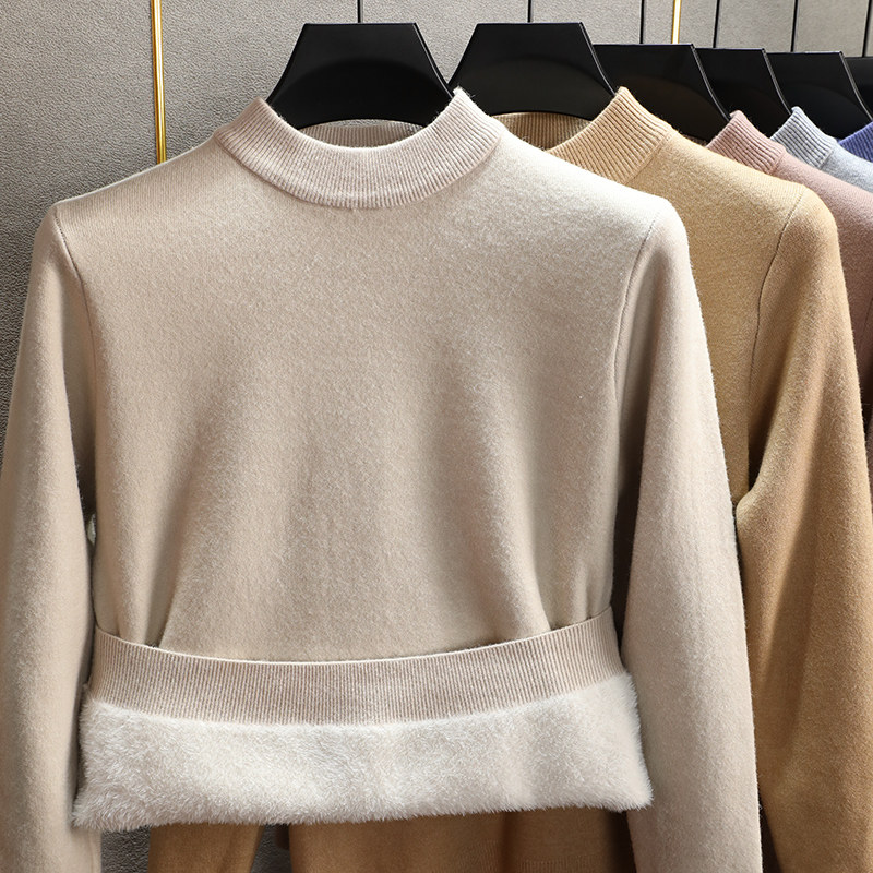 Integrated suede half high collar sweater male autumn winter plus suede thickened pure color minimalist with no bloated man knit undershirt-Taobao