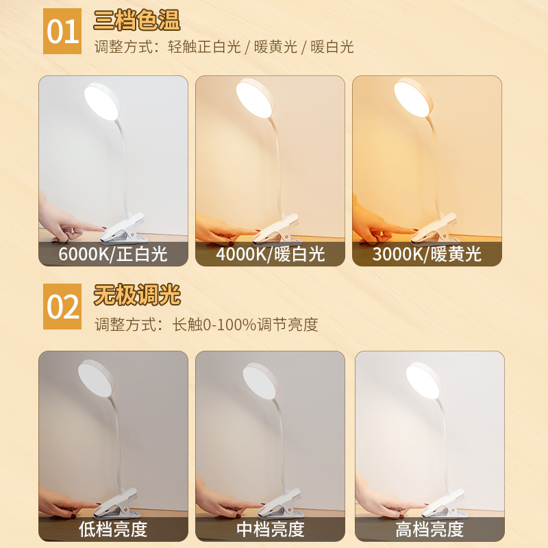 Clip-type small table lamp Charging plug-in eye light Learning special student Dormitory Desk for Home Bedroom Headlights-Taobao