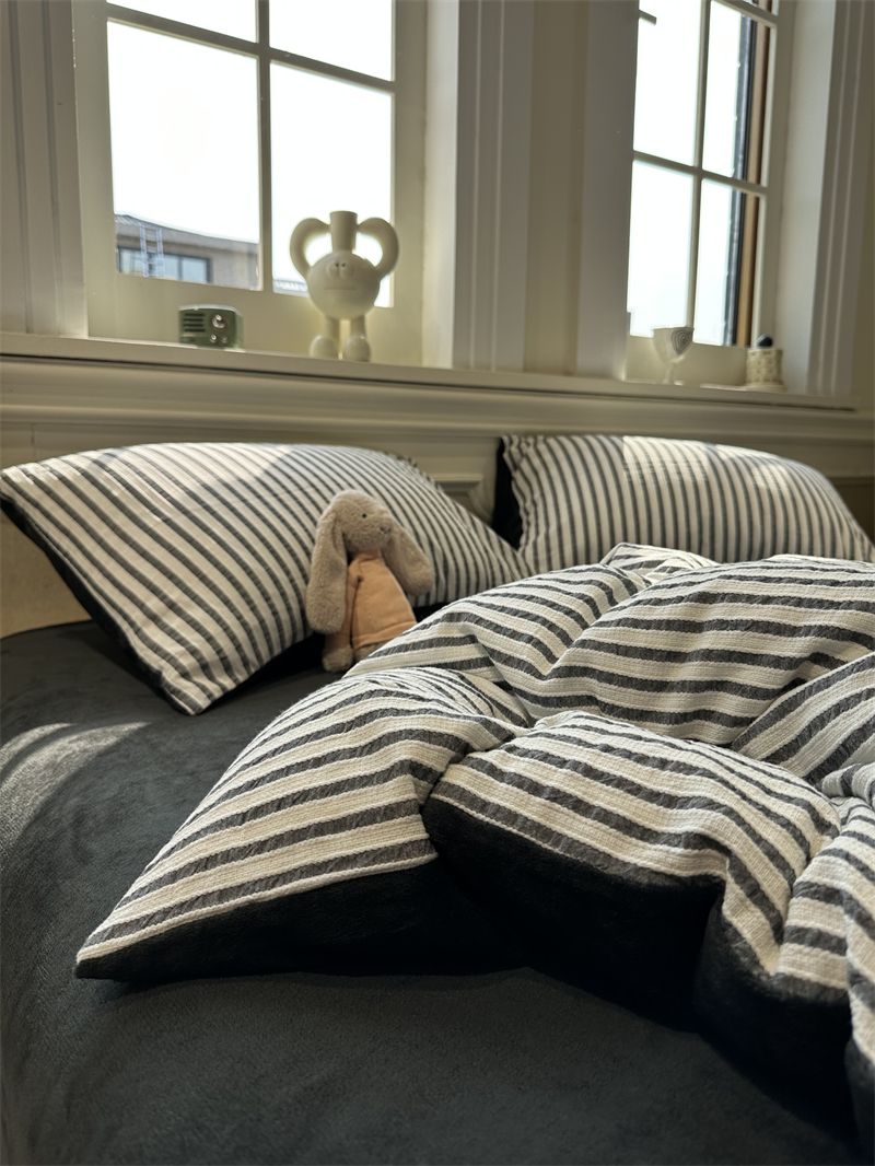 A face color weave washed cotton jacquard B version of milk suede grey four sets 1 5m1 8 autumn winter comfortable and warm Nordic-Taobao