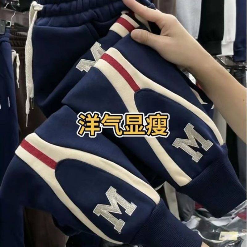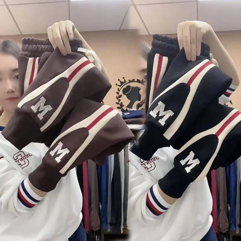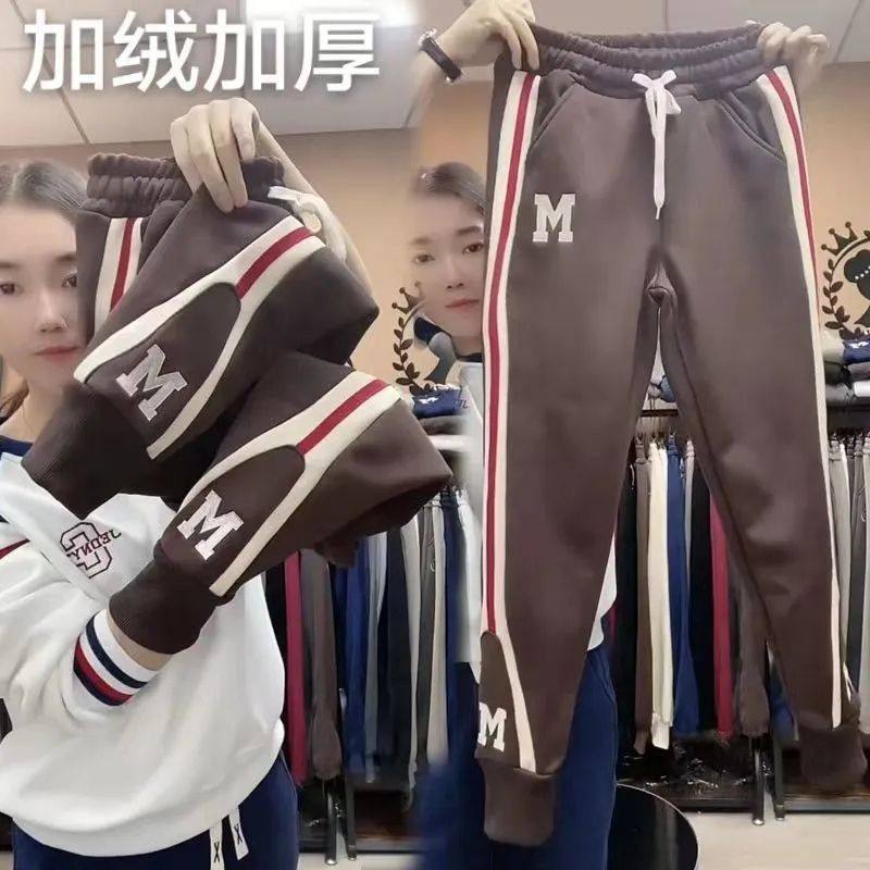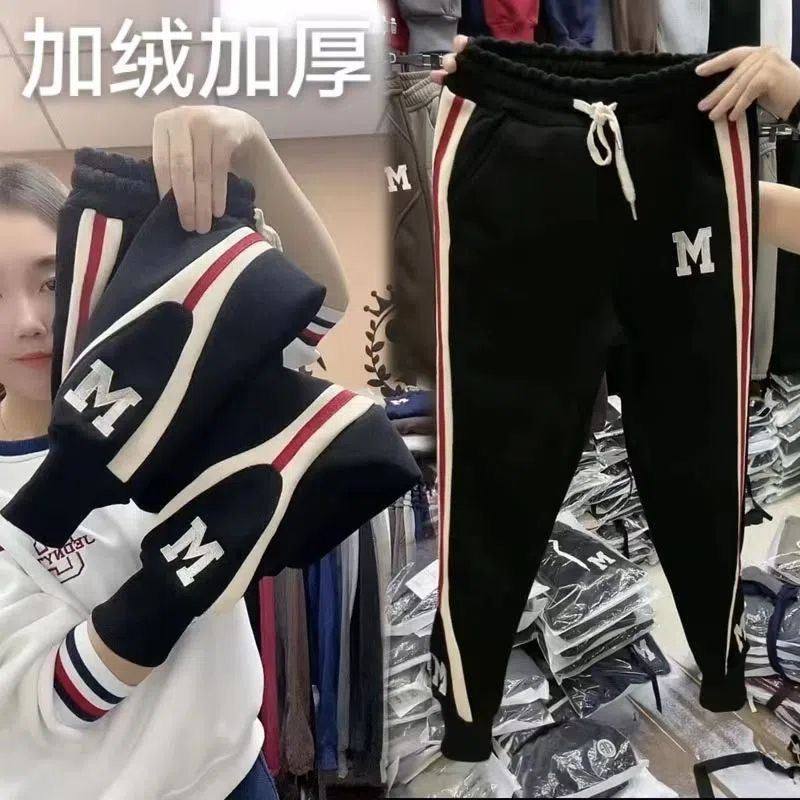 Town store bull stock -- special cabinet Withdrawal Autumn winter bursting letters Harun pants plus suede thickened splicing small-footed radish pants-Taobao