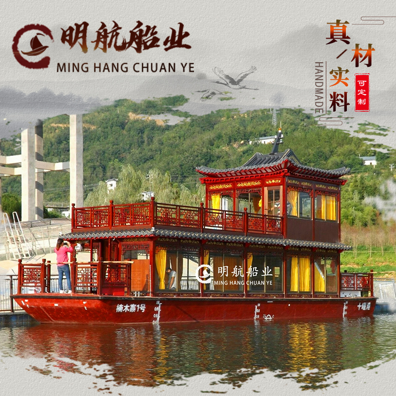 Wooden Boat Painting Large Water Dining Sightseeing Tours Double Antique Electric Luxury Reception Conference Scenic Area House-Taobao