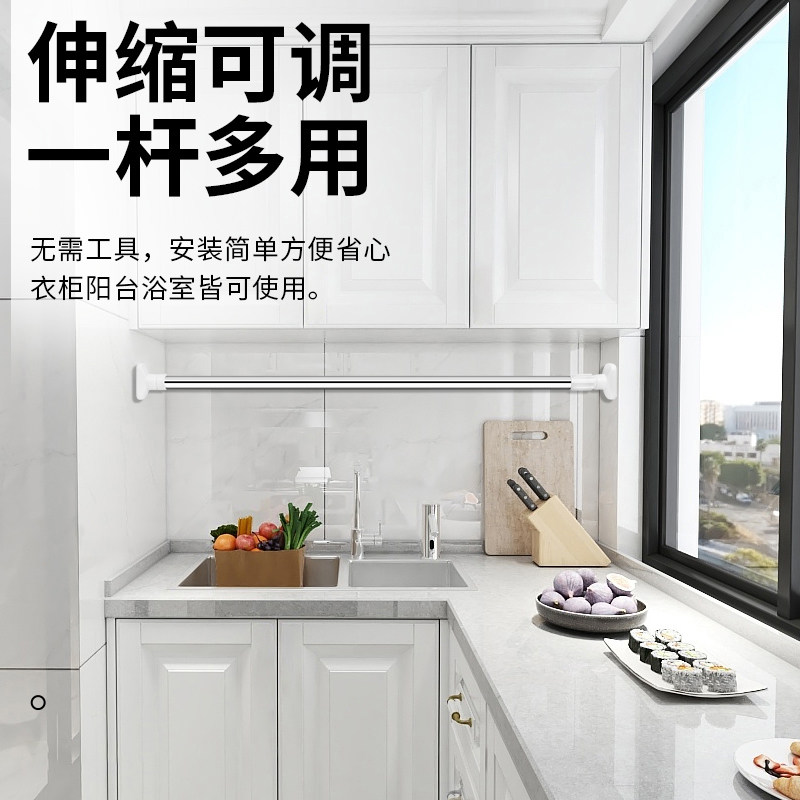 Punch-free telescopic clotheshorse Wardrobe Hanging bar Stainless Steel Curtain Hanging Pole Bath Curtain Rod Subdoor Curtain Wardrobe Brace-Taobao