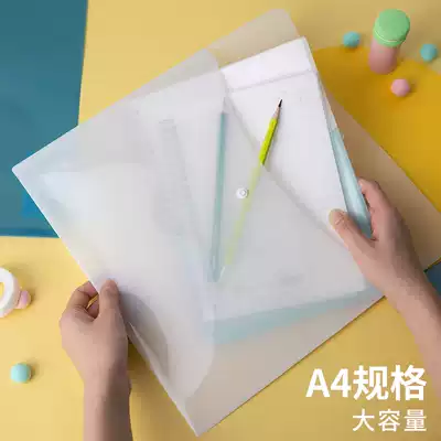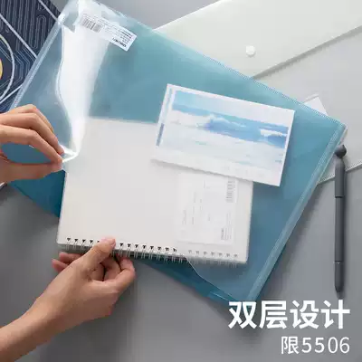 Del file bag snap transparent test paper storage bag A4 folder button bag plastic data file bag storage Office folder blue white optional single pack 5506