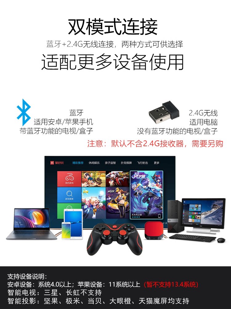USB receiver (without controller) Single game controller (play multiple games) Double game controller (play multiple games) Single game controller USB receiver Dual