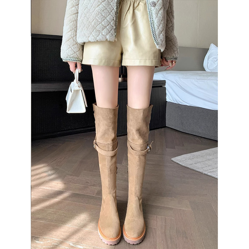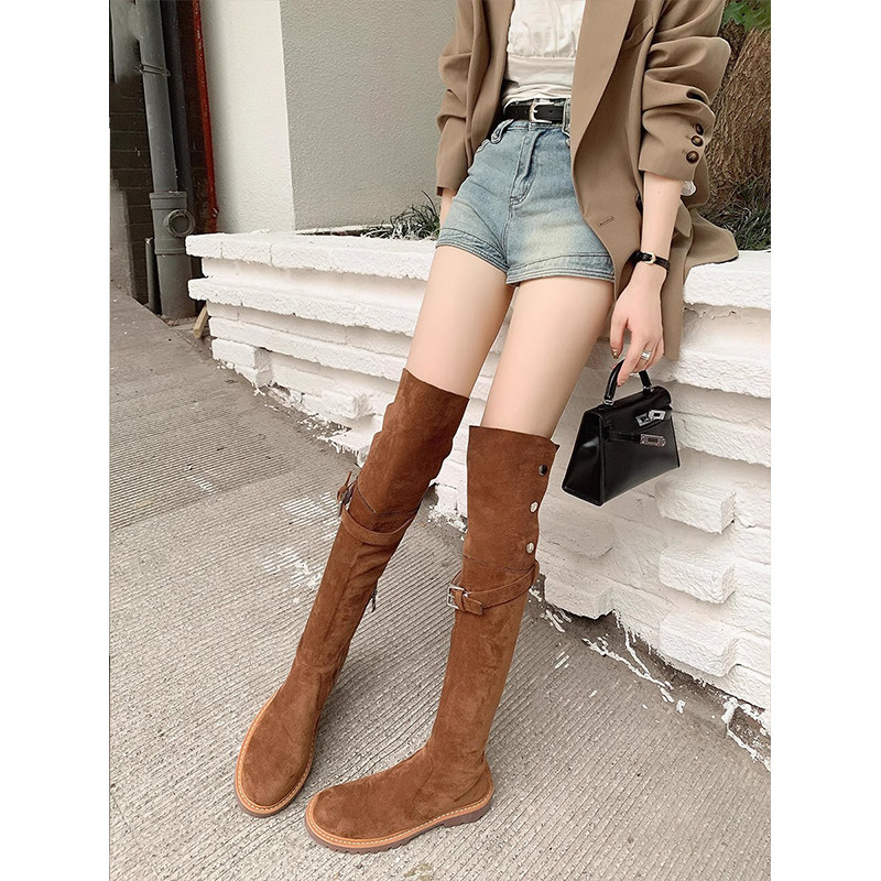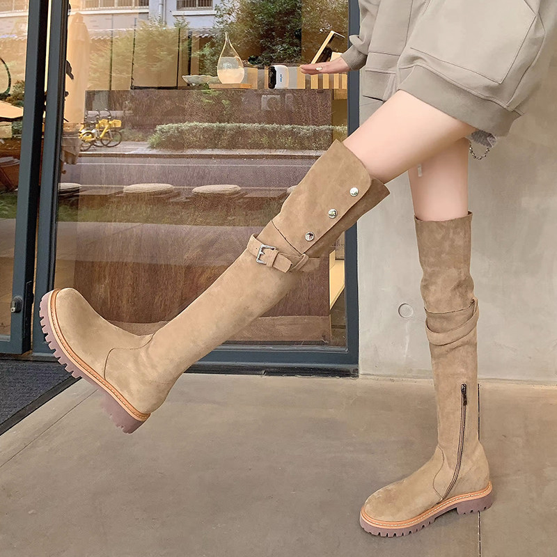 Small Grapes Over Knee Long Boots Woman 2023 Autumn Winter New Lean Long Barrel Boots Flat Bottom Retro Two-Wear Suede Boots-Taobao