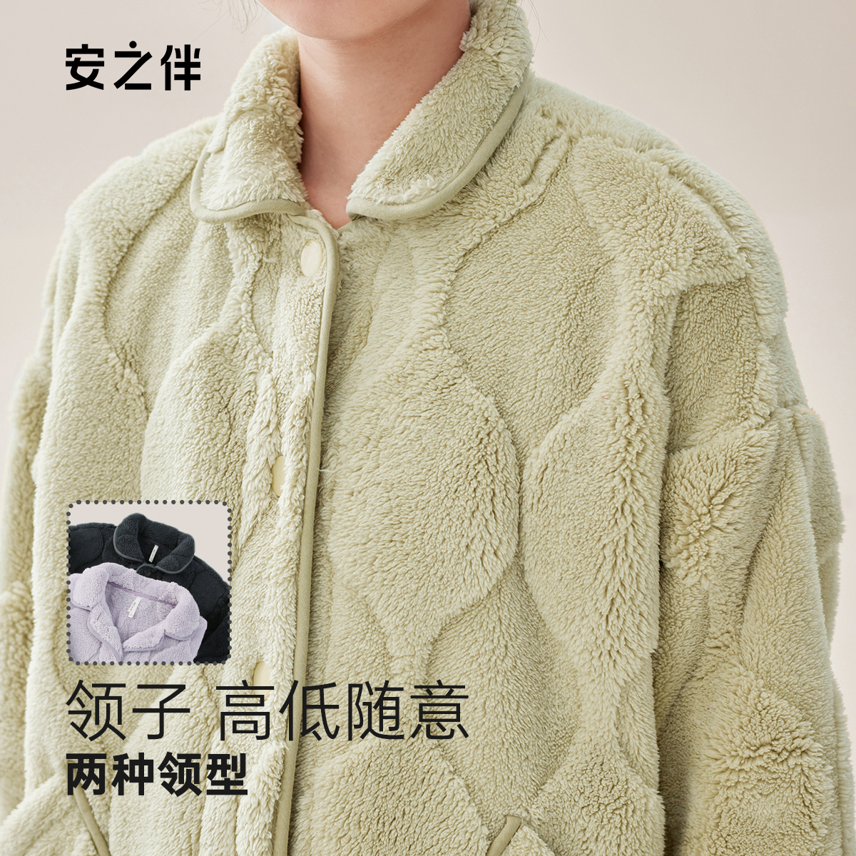 Ahn's companion autumn winter coral suede lovers'pyjamas' sleeping suit thickened warm men and women's home clothes semi-covered sleeves garnter-Taobao