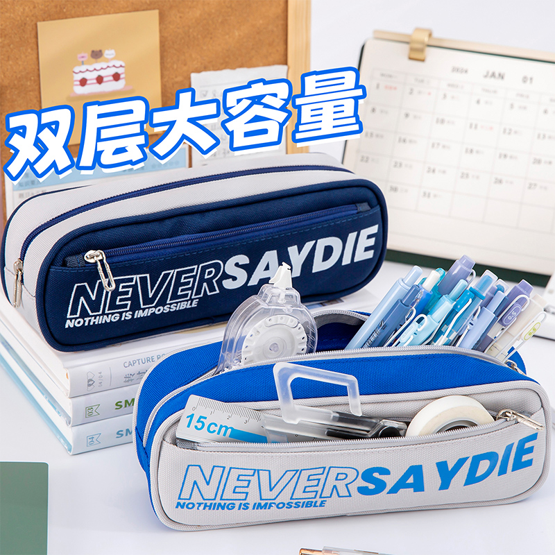 High face value double layer large capacity pen bag 2023 new cool trend beginnups primary and middle school students writing pencil case male children Korean version lead pencil case female brief Joins senior sense new pop stationery bag-Taobao