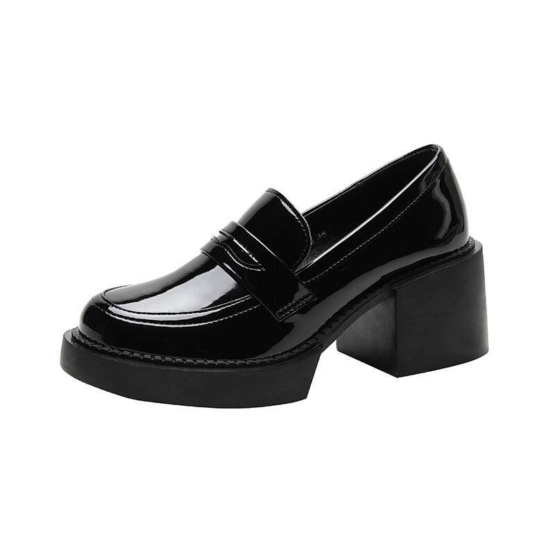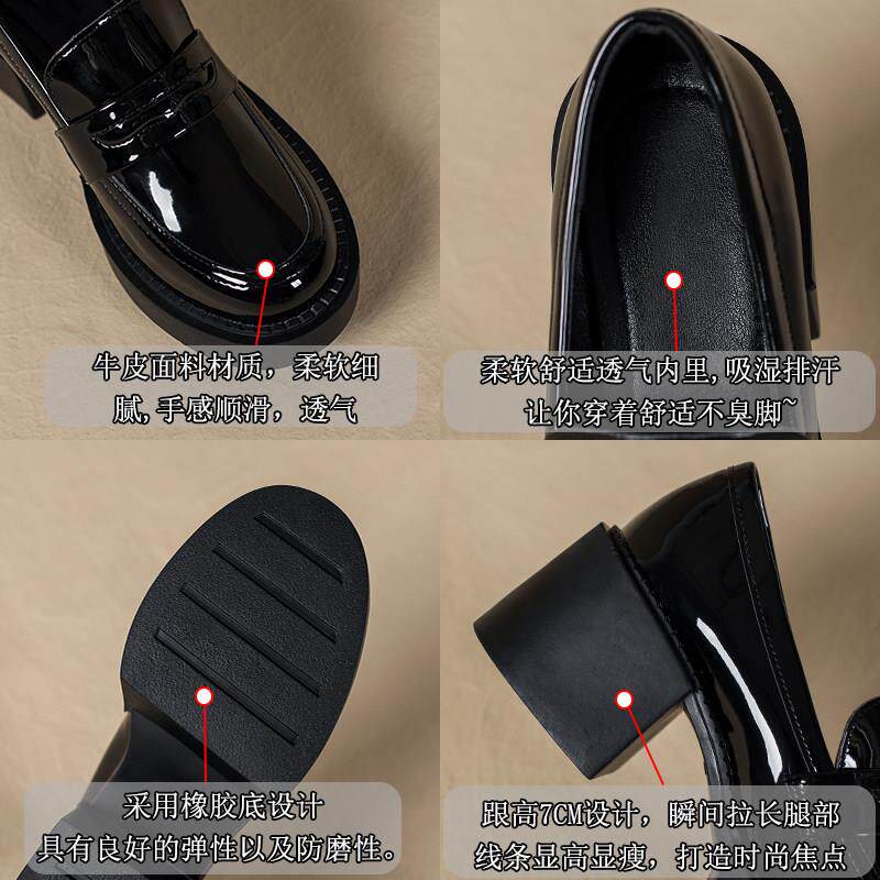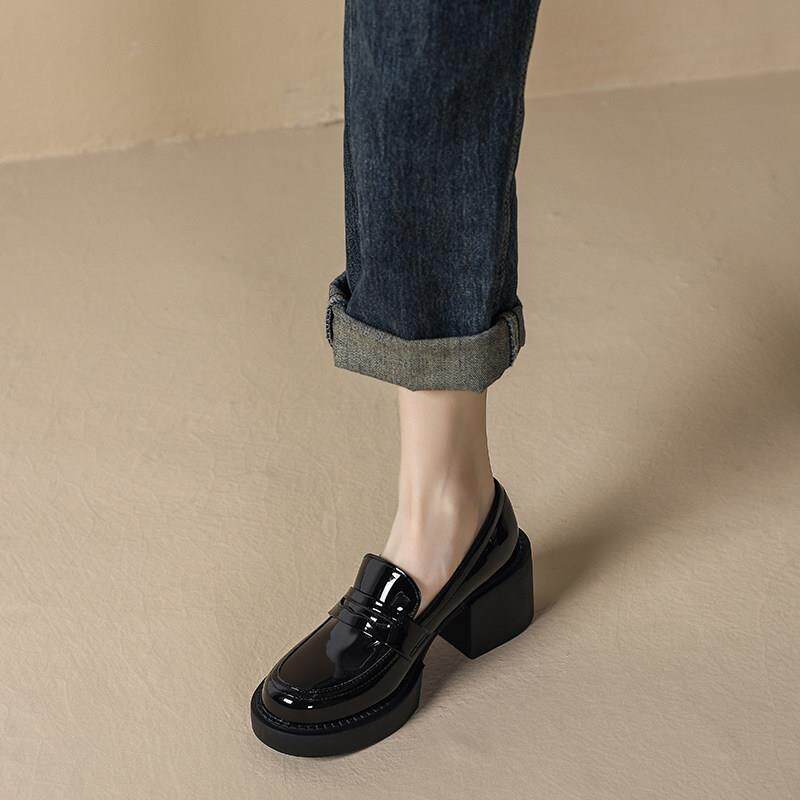 Round Head Small Leather Shoes Woman 2023 Fall new Inn Wind High heel Brief rough heel Thick Bottom Genuine Leather Single Shoes-Taobao