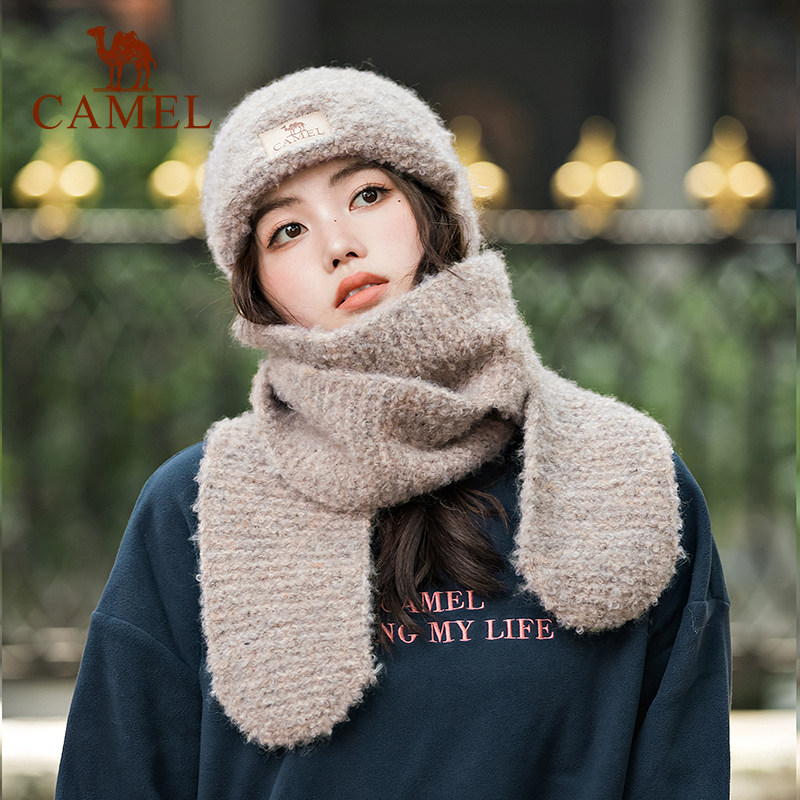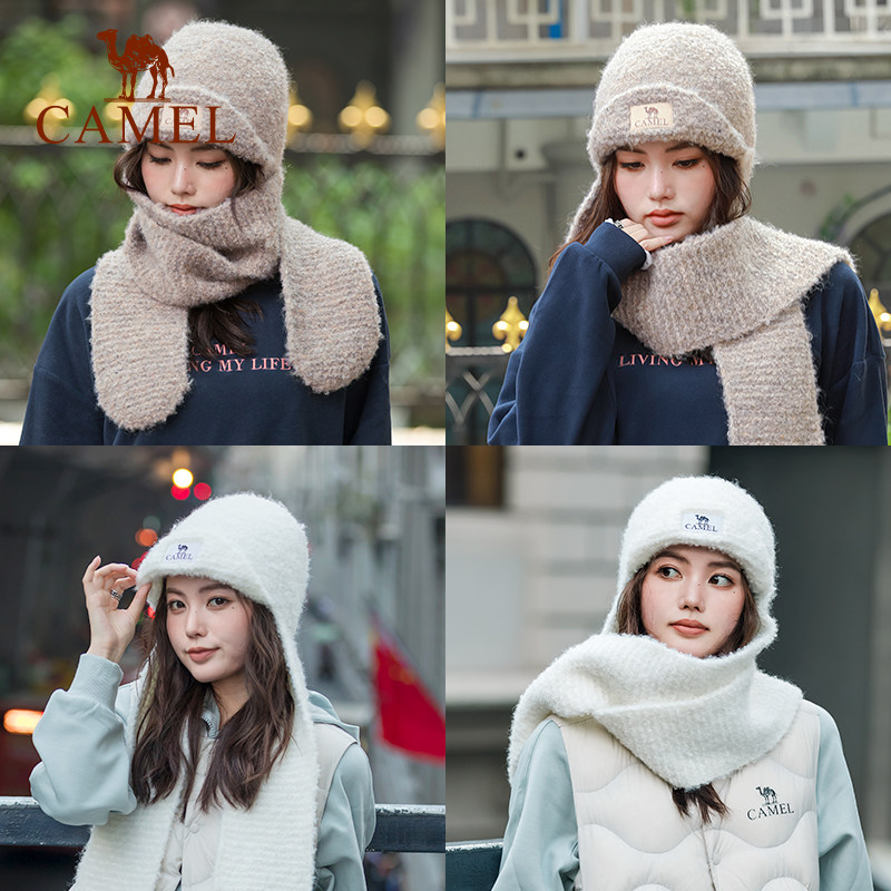 Camel warm hat Scarf Integrated Hat Lady Winter Knit Scarf Bike Windproof Protective Ear Wool Hat Thickened-Taobao