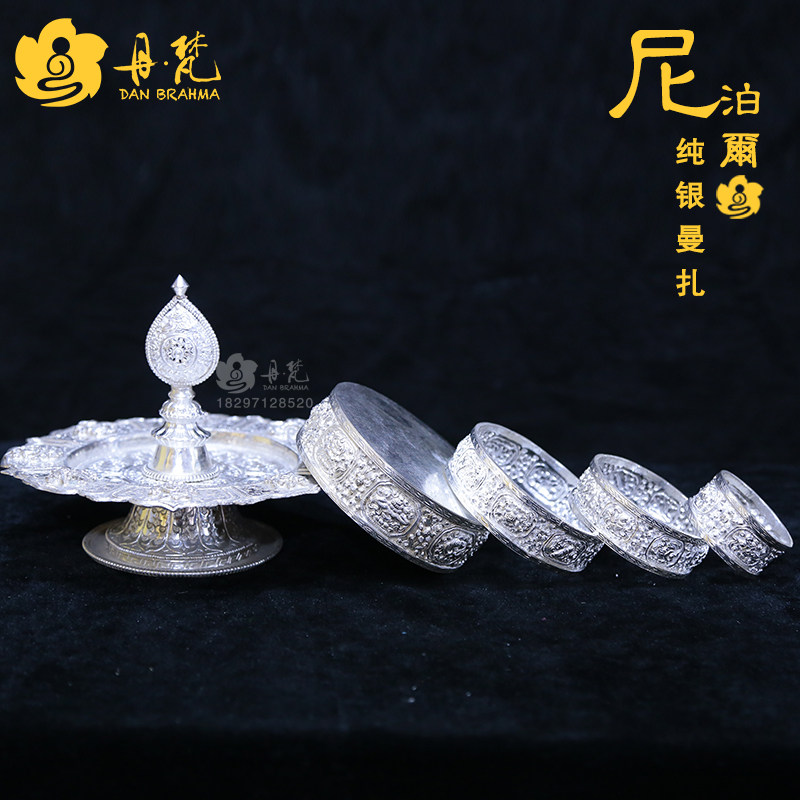 Nepal 925 pure silver eight precious metal Manza Manza tray Man tea Luo boutique diameter 17 5-Taobao
