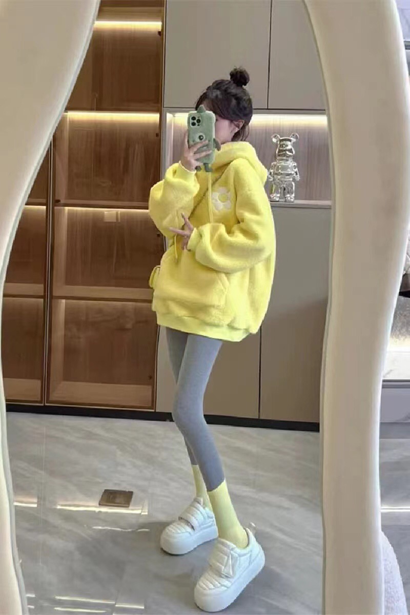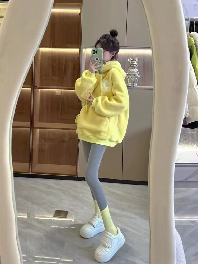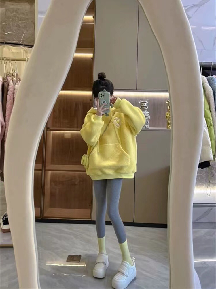 Yellow sweatshirt-autumn-style yellow sweatshirt-gush underpants-autumnille grey slapped underpants-plus velvet yellow sweater grey underpants-autumn-style yellow sweatshirt grey underpants-gush
