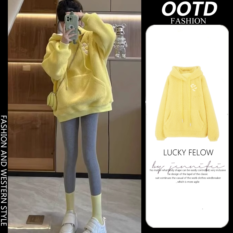 Pregnant woman Little sub-lambs yellow Lions yellow Lions clothing Women's autumn winter plus suede thickened High Sensation Han Edition Loose blouses-Taobao