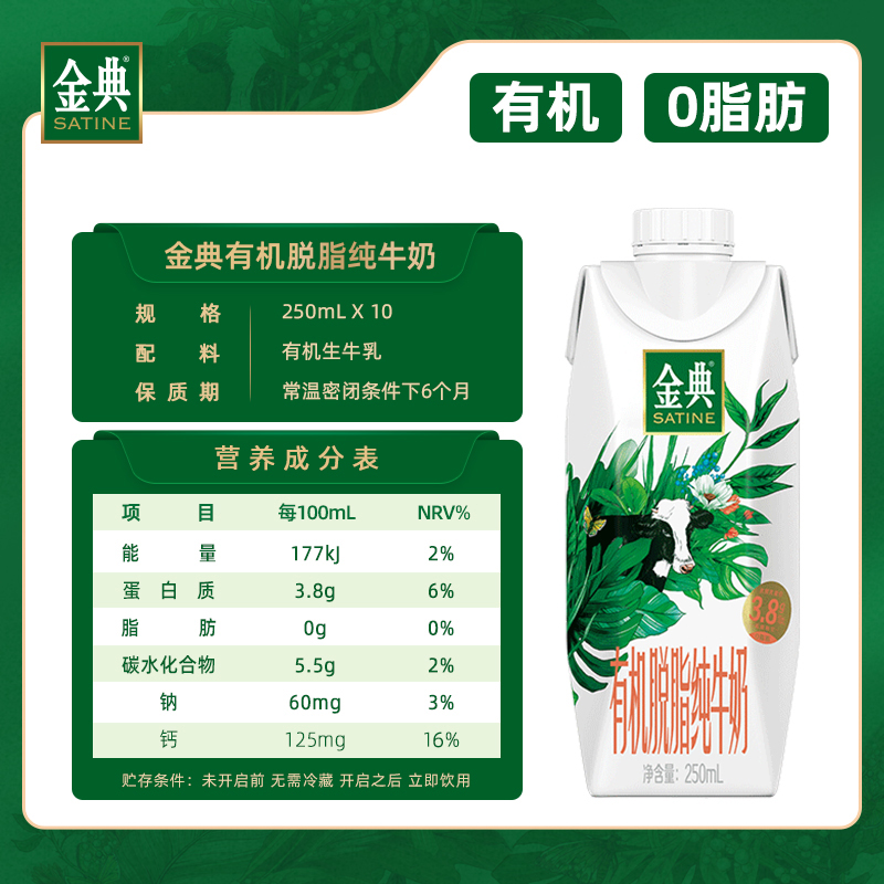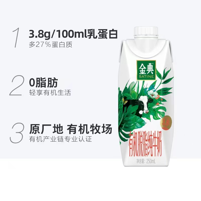 (ten billion subsidy) flagship gold classic organic degreasing pure milk dreamy cover 0 fat 250mL* 10 bottles October-Taobao