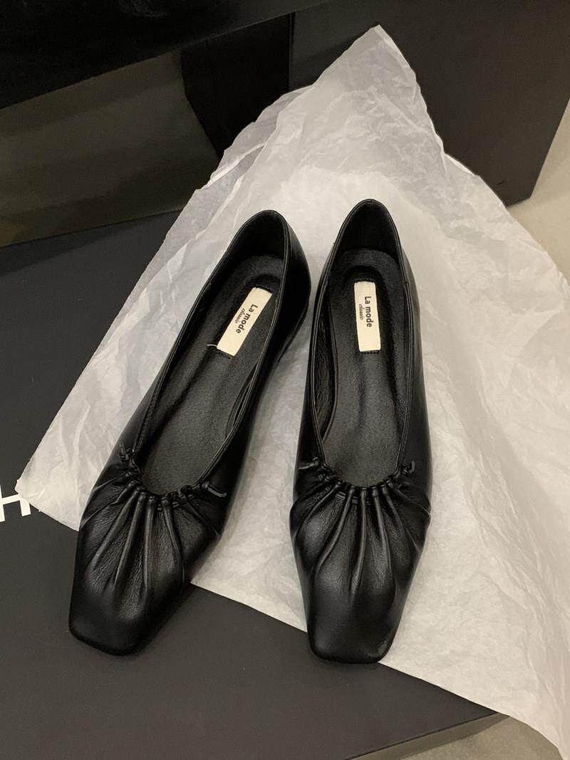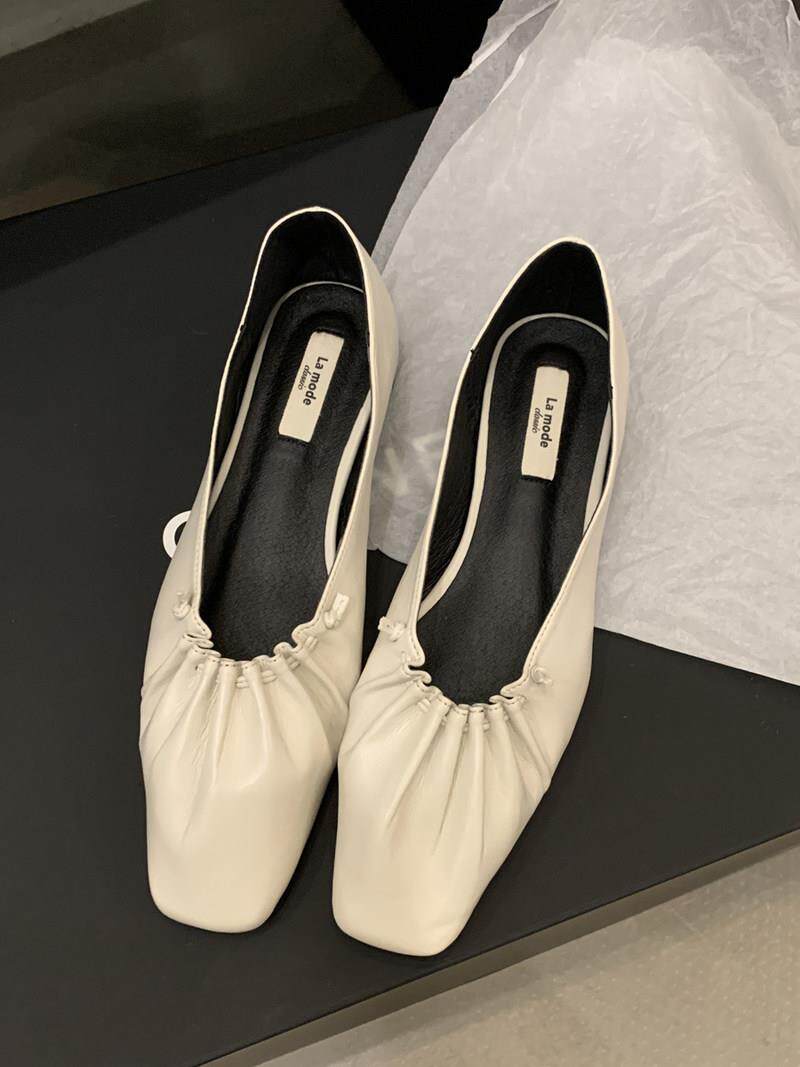 Tide Card Style Square Head Folds Flat Bottom Single Shoes Woman 2023 Spring Fairy Wind Ladyshoe 100 Hitch Working Shoes Grandma Shoes-Taobao