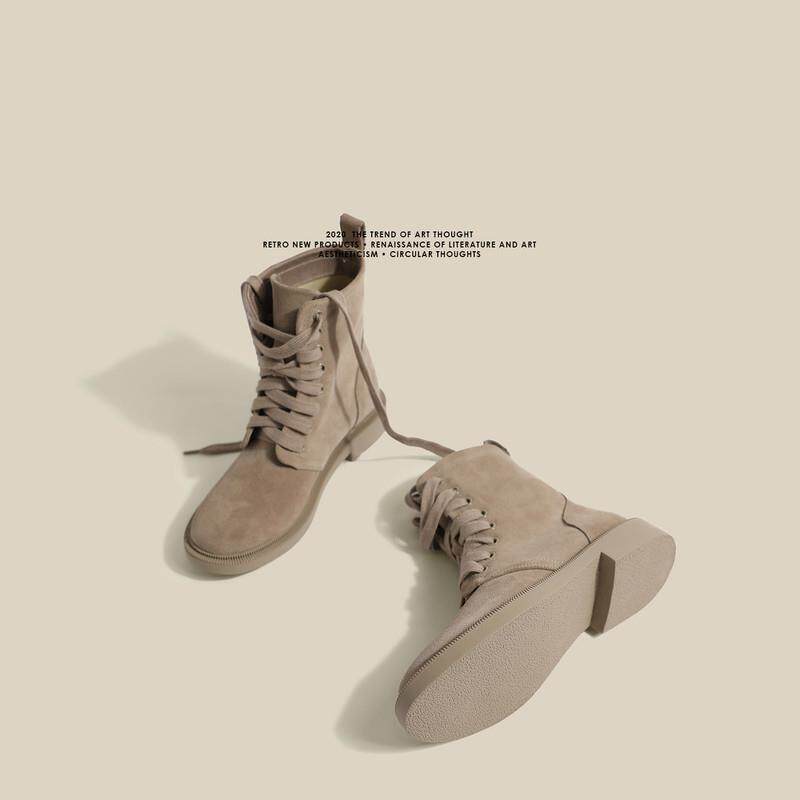Inglées Frosted Martin Boots Woman 2023 Autumn Winter New Sand Color Retro Low Heel Short Boots Flat Bottom Plus Suede Single Boots-Taobao