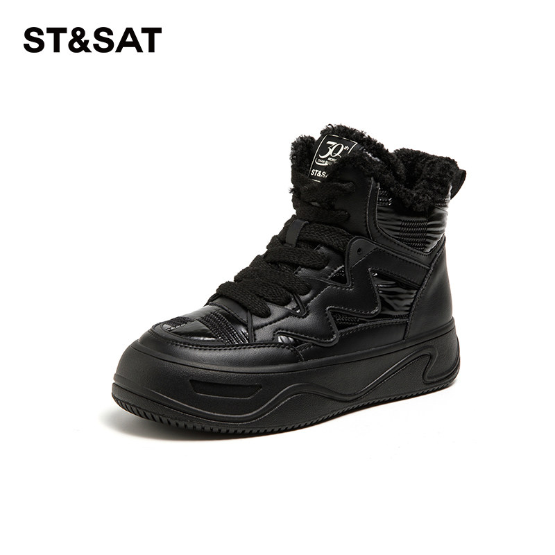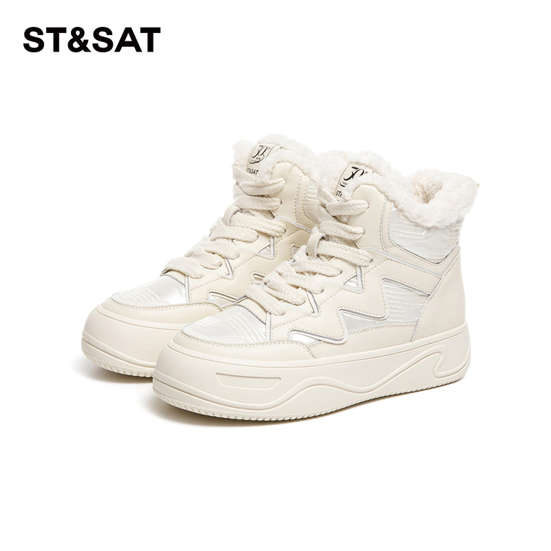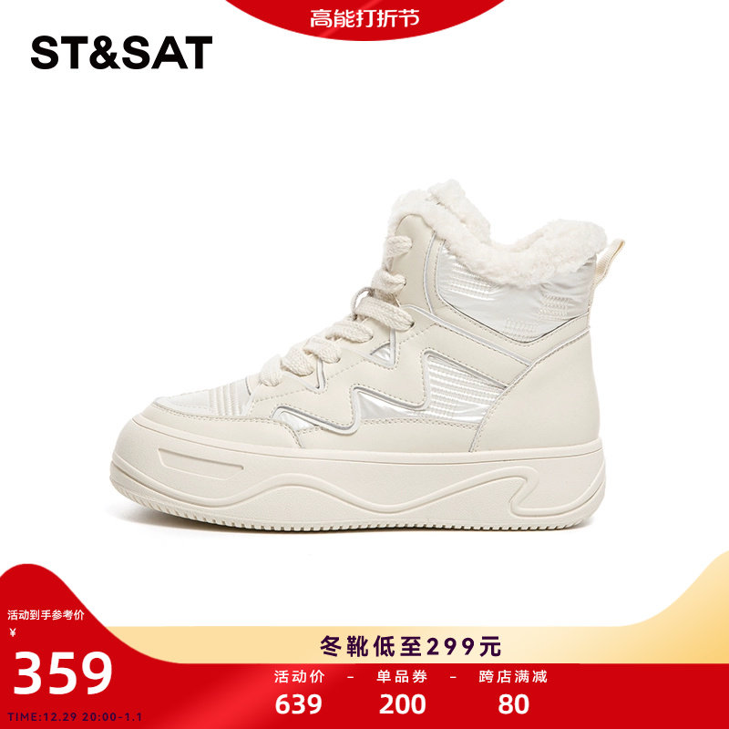 Saturday Genuine Leather High Helper Shoes Women 2023 New Autumn Winter Plus Suede Board Shoes Casual Sneakers SS331180G0-Taobao