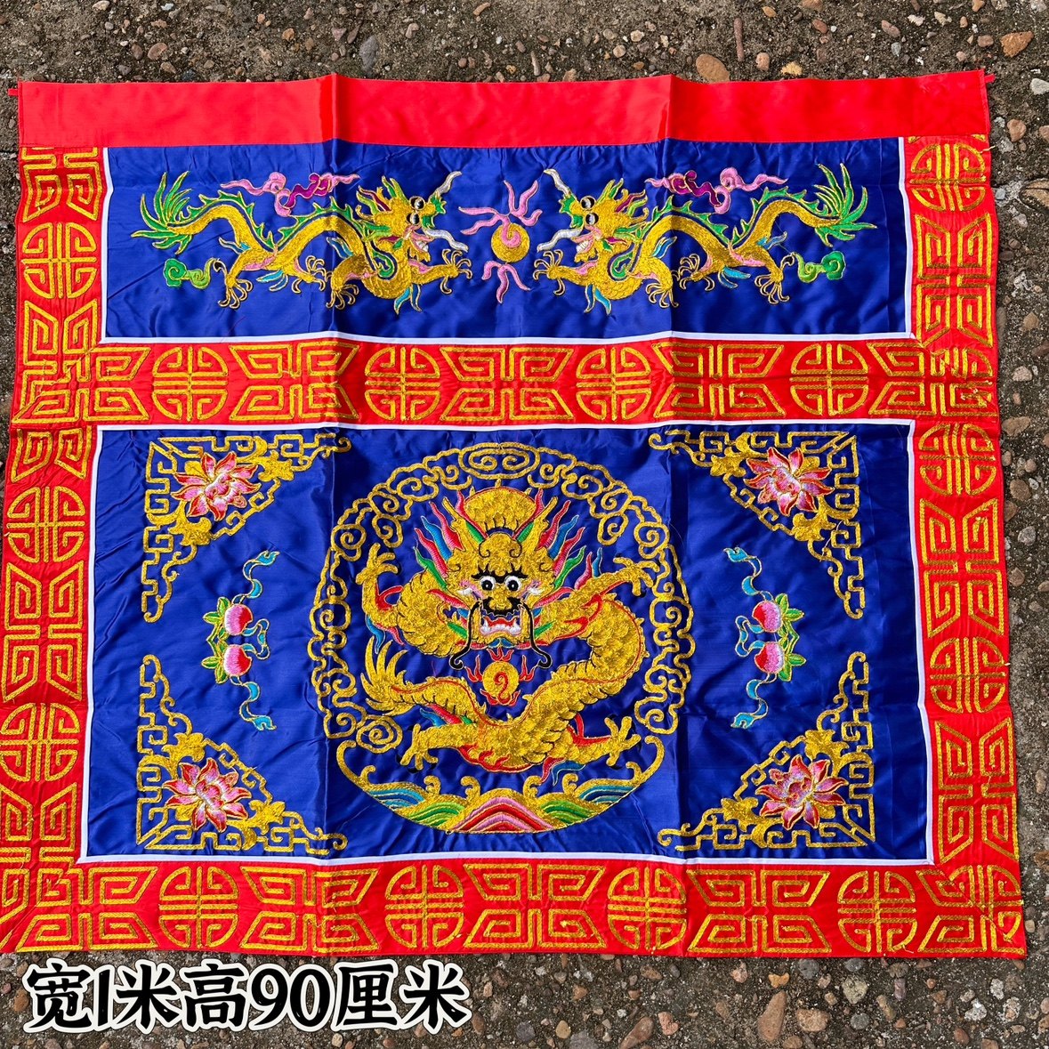 1 meter Panlong table apron, small Panlong gold thread, 7 colors optional table apron, table skirt embroidered Double Dragon blue altar apron
