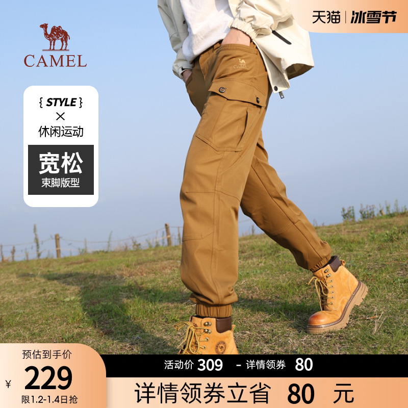 Camel Men's Clothing Tooling Pants Men's Autumn Winter Plus Suede Outdoor Anti-Splashing Water Loose Bunches Sports Vanguard Casual Long Pants-Taobao