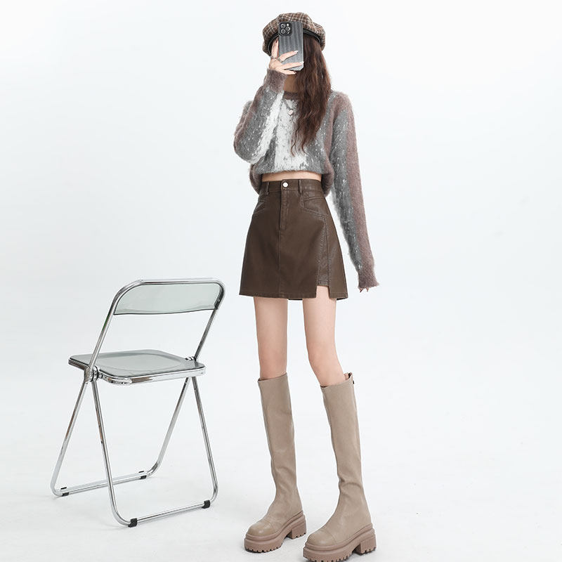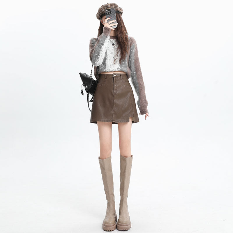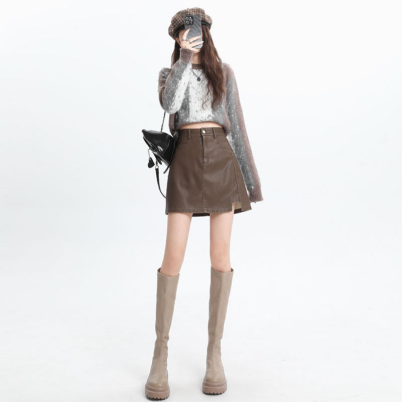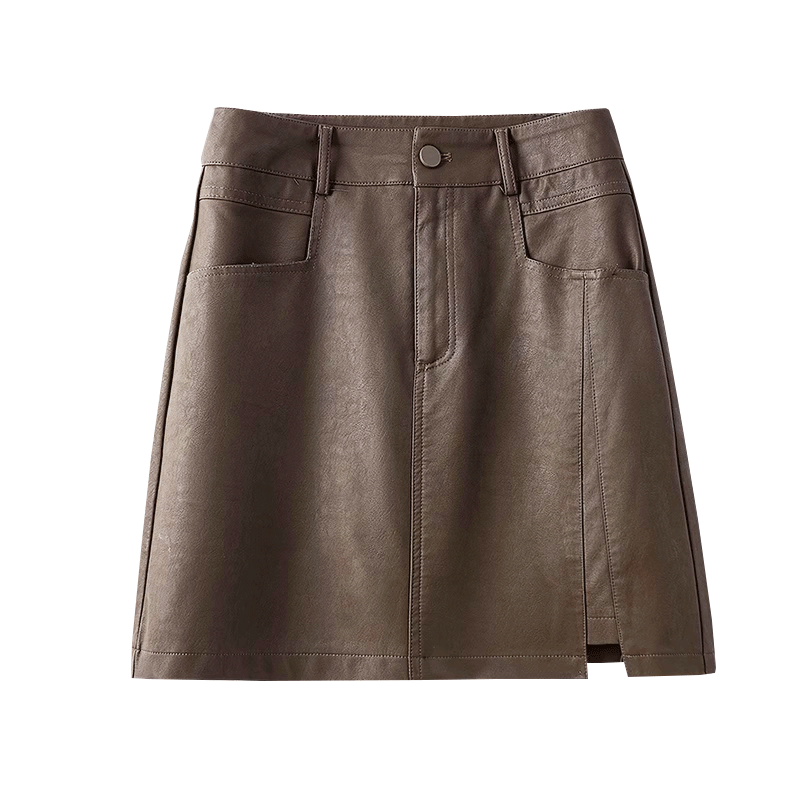 Lasciabelle curly leather skirt half body dress lady autumn winter high waist a word hot girl pu leather short skirt merald bag hip skirt-Taobao