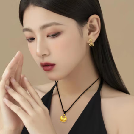 Zhou Dafu 999 foot gold small fat foe gold necklace girl little golden lump baby pendant birthday gift to girlfriend-Taobao