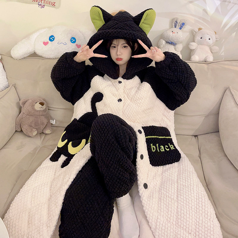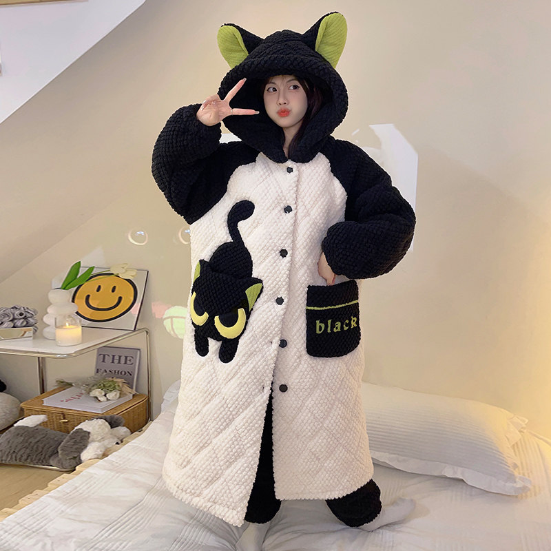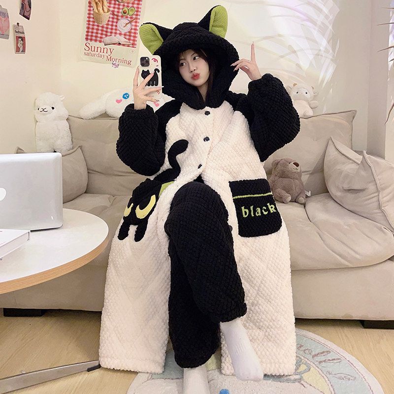 Autumn and winter days 2023 new three-layer clip cotton ladies Sleeping Gown Coral Suede Palate Plus Suede Thickened Home Suit-Taobao